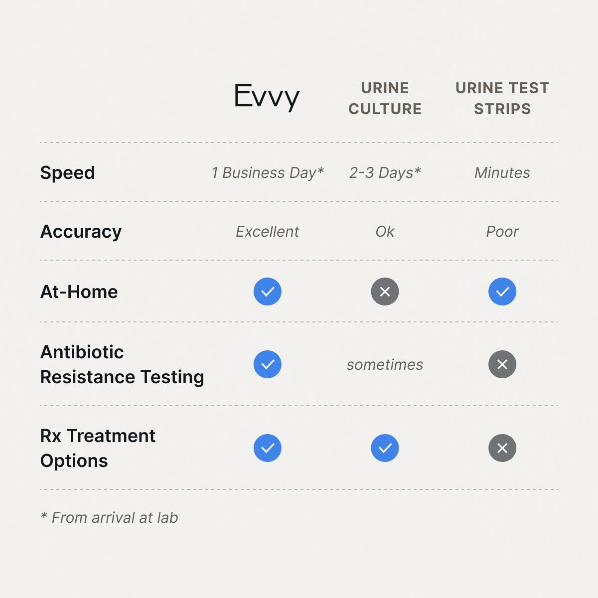 Evvy’s UTI+ Test provides results within 1 business day of the lab receiving your sample, combining speed with comprehensive analysis.