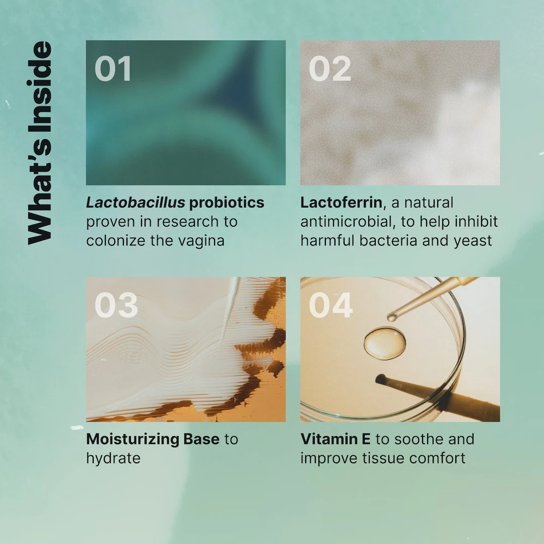Formulated with a proprietary blend of multiple clinically-studied probiotics (like Lactobacillus crispatus) and enhanced by lactoferrin, a powerful antimicrobial that helps control unwanted bacteria and yeast.