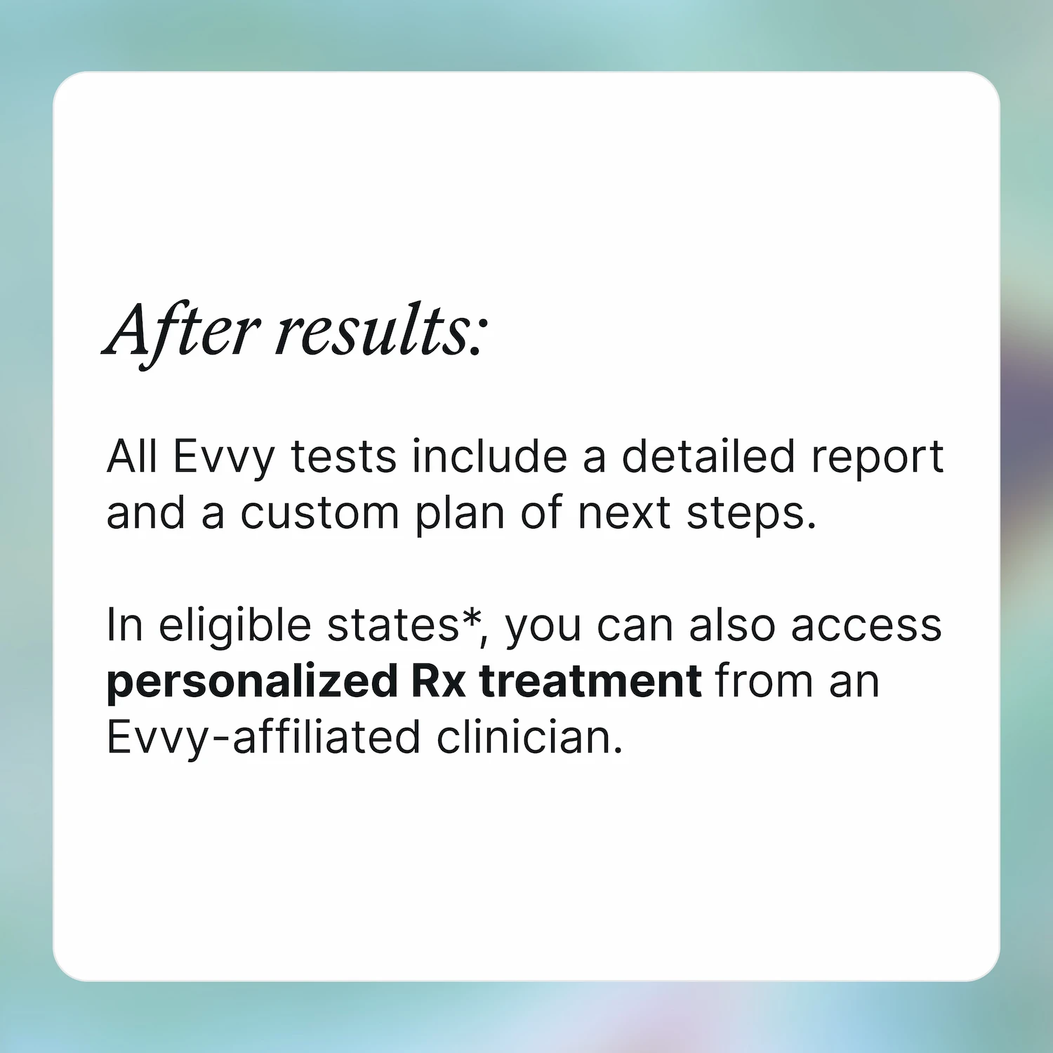 *if eligible. Note: cost of Rx treatment is not included in the test price.